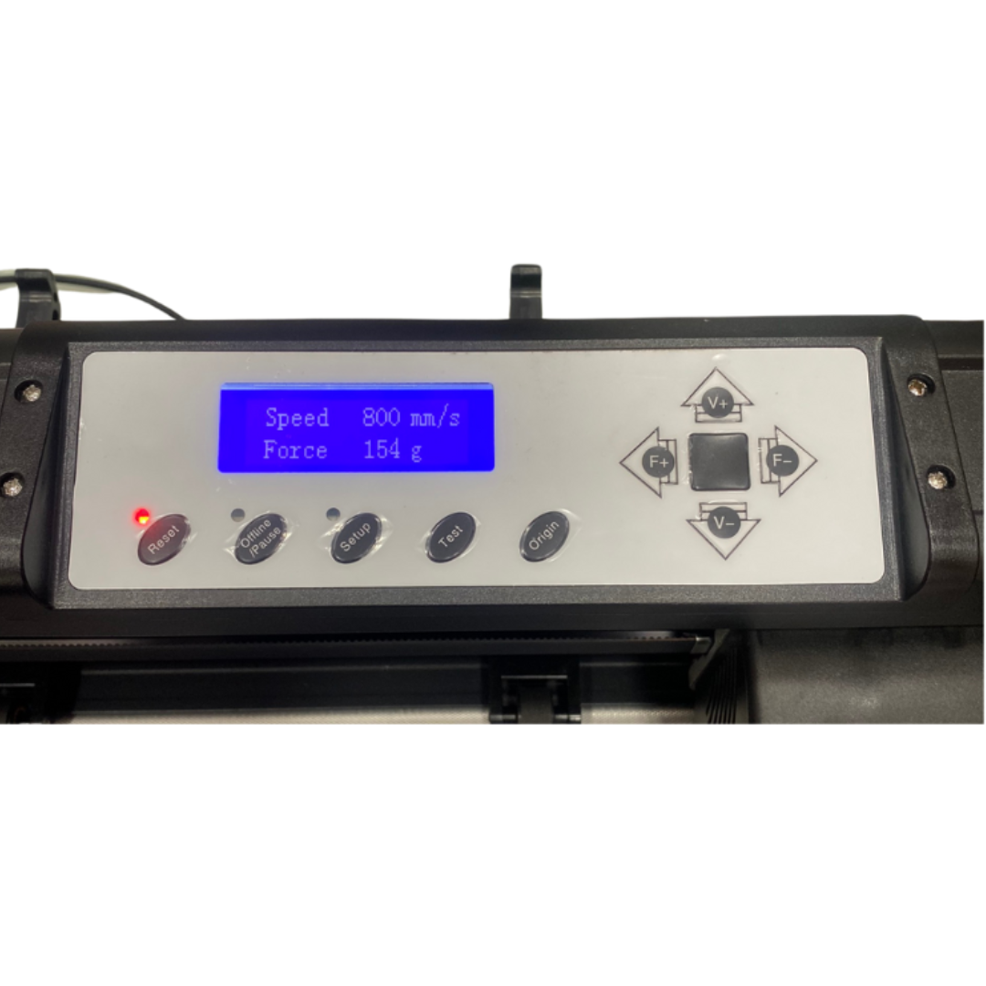 - Căn chỉnh tốc độ, lực cắt (bước chỉnh 1mm/s, 1g).