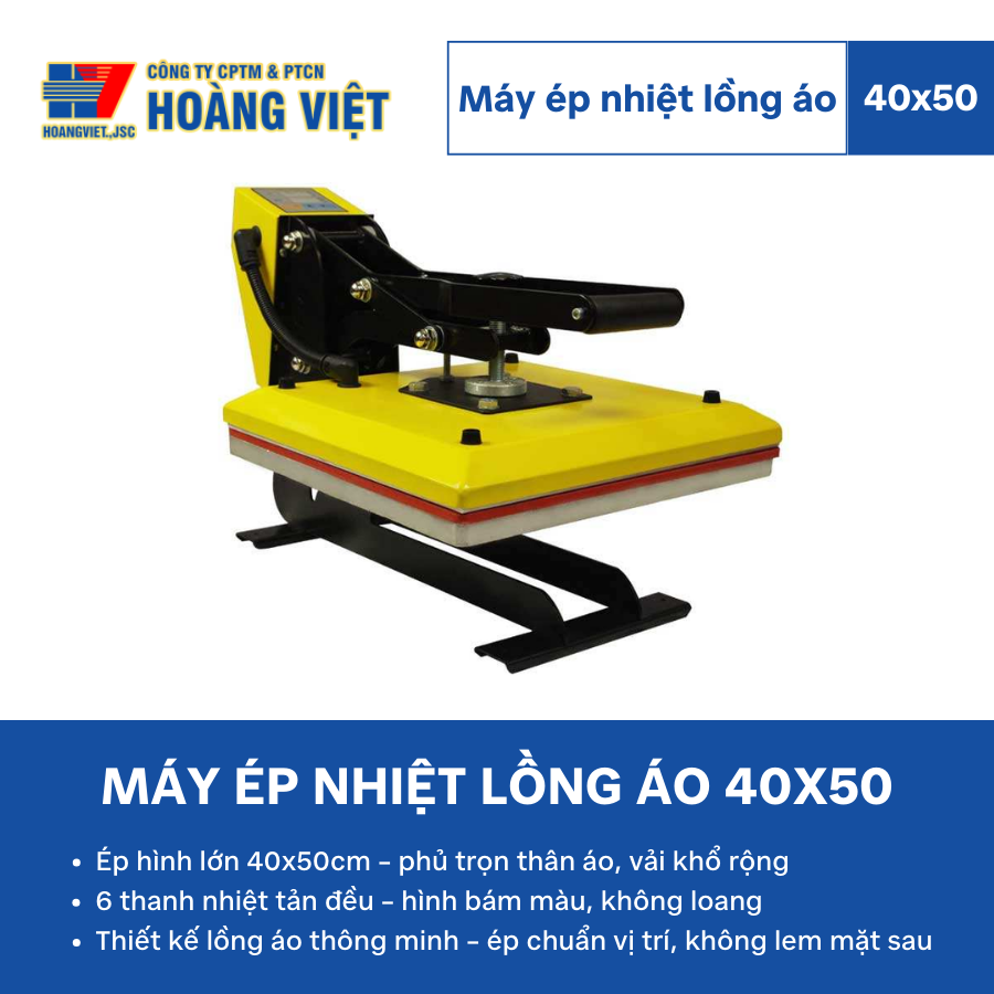 👉 Liên hệ ngay Máy In Hoàng Việt để nhận báo giá tốt nhất cho máy ép nhiệt lồng áo khổ 40x50 và mở rộng dịch vụ in áo chuyên nghiệp.