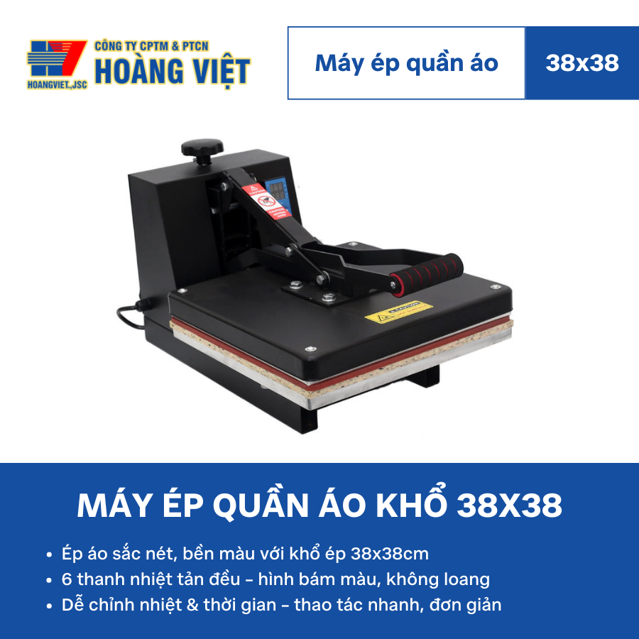 👉 Liên hệ ngay Máy In Hoàng Việt để nhận báo giá tốt nhất cho máy ép nhiệt quần áo 38x38 và bắt đầu kinh doanh in áo hiệu quả.