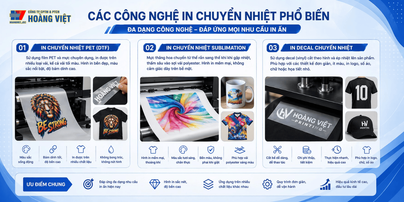 Các công nghệ in chuyển nhiệt phổ biến