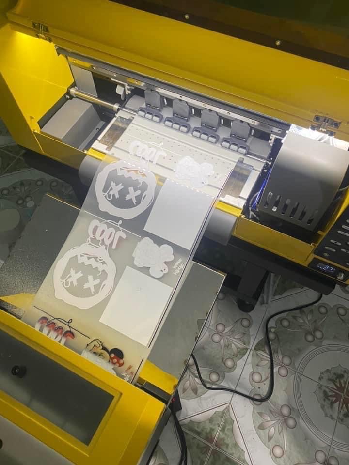 Các thiết bị kèm khi in: Máy in + Máy sấy màng pet + máy ép nhiệt