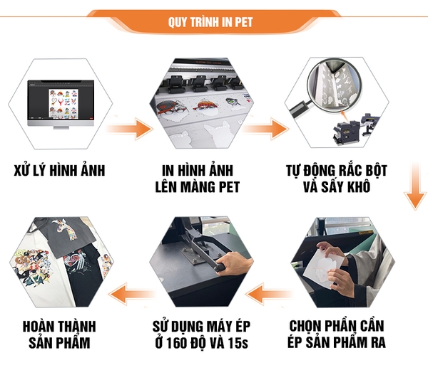 Các thiết bị kèm khi in: Máy in + Máy sấy màng pet + máy ép nhiệt