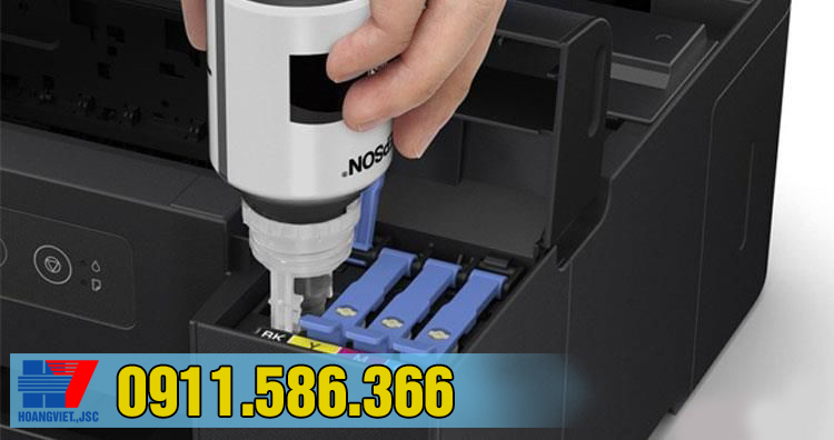 Bạn có thể tự mình bơm mực cho máy in phun màu Epson L4150 với thao tác cực kỳ đơn giản mà không cần đến những kỹ thuật viên, bằng cách đổ mực vào hệ thống mực liên tục với những lọ mực chính hãng Epson.