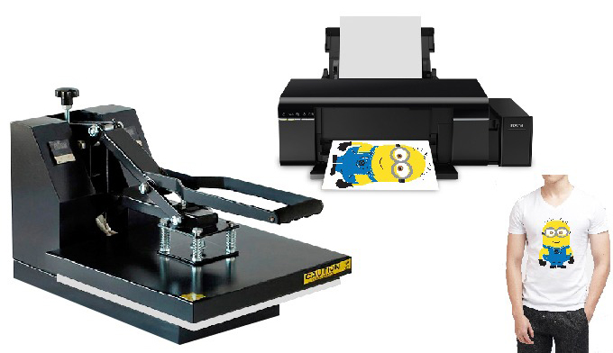 (Máy dùng mực in chuyển nhiệt để ép áo)