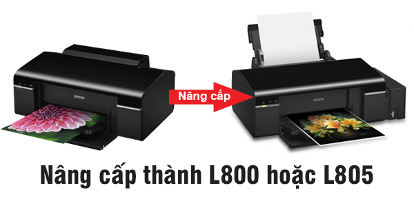 - Epson T50 có thể nâng cấp thành Epson L800 với nhiều tiện ích và ưu điểm không cần dùng chíp mực, khả năng in liên tục trong khoảng 800 trang ảnh A4 full màu mới Reset Level mực.