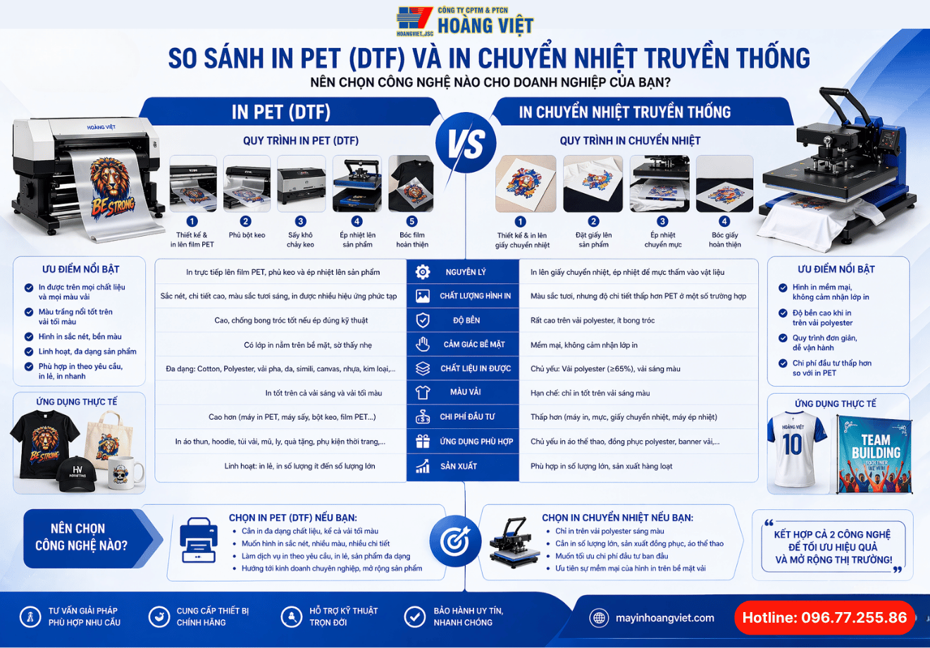 So sánh in PET và In chuyển nhiệt truyền thống: Nên chọn công nghệ nào? (21/04/2026)